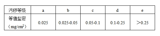 Q/GDW1152.1《電(diàn)力系統污區分(fen)級與外絕緣選(xuǎn)擇标準第1部分(fen):交流系💋統🔴》中規(gui)定污穢等級與(yǔ)等值鹽密的關(guan)系如下表: