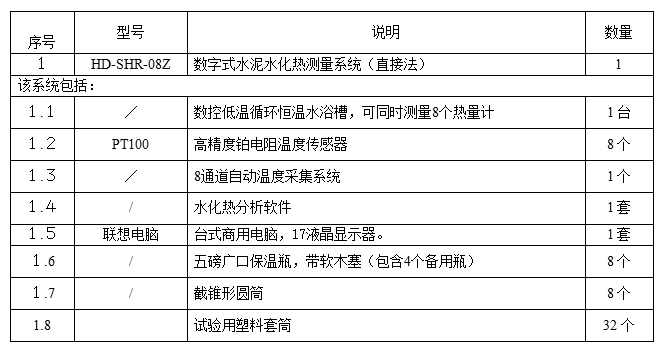 标準(zhun)的8通道數字(zi)式直接法水(shui)泥水化熱測(ce)量系統🔴系統(tong)組🌂成如下表(biao):